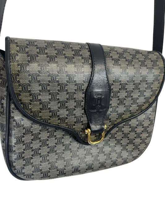 CELINE Vintage Macadam Canvas Navy Crossbody Bag