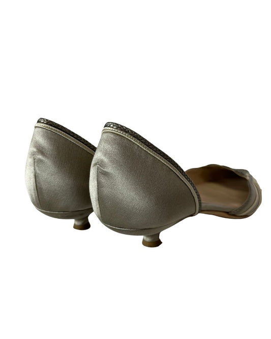 GIORGIO ARMANI D'Orsay Satin Beige Kitten Heels (Size 8.5)