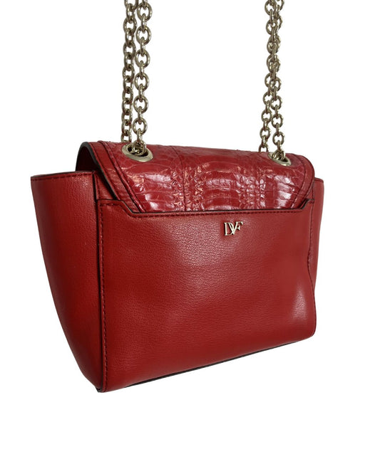 DIANE VON FURSTENBERG 440 Mini Snake Embossed Red Leather Bag