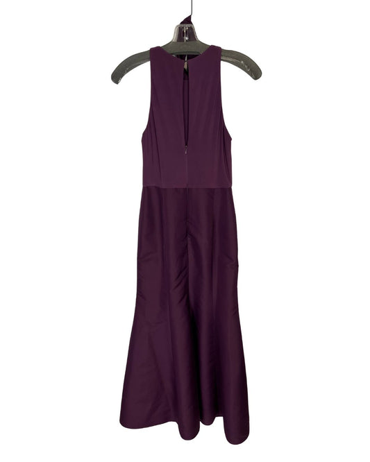 ALFRED SUNG Purple Satin Round Neck Drape Evening Dress (Size S)