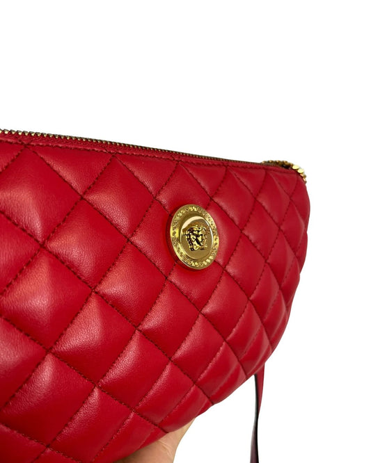 VERSACE Red Quilted Medusa Half-Moon Purse