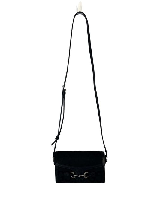GUCCI Horsebit 1955 Jumbo GG Mini Black Crossbody Bag Purse