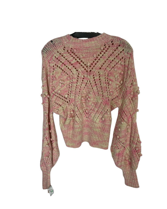 ZIMMERMAN Pompom Pointelle Knit Pink & White Sweater (Size S)