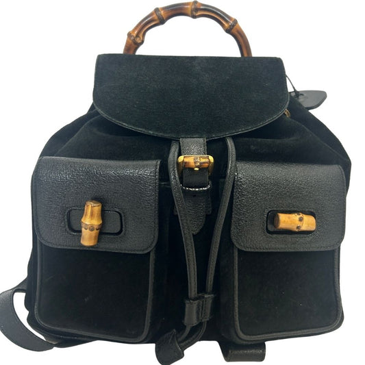 Gucci Vintage Black Suede & Leather Bamboo Backpack – Goldtone Hardware (Authenticated)