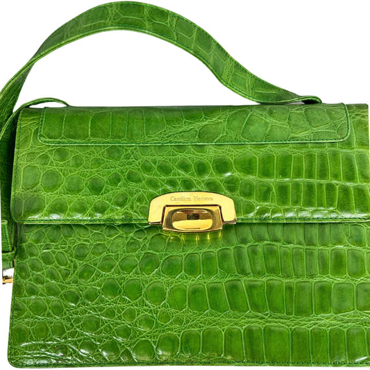 CAROLINA HERRERA Vintage Green Faux Crocodile Skin Handbag