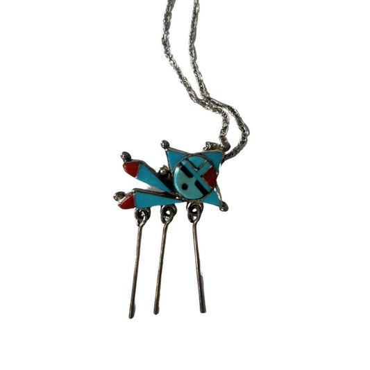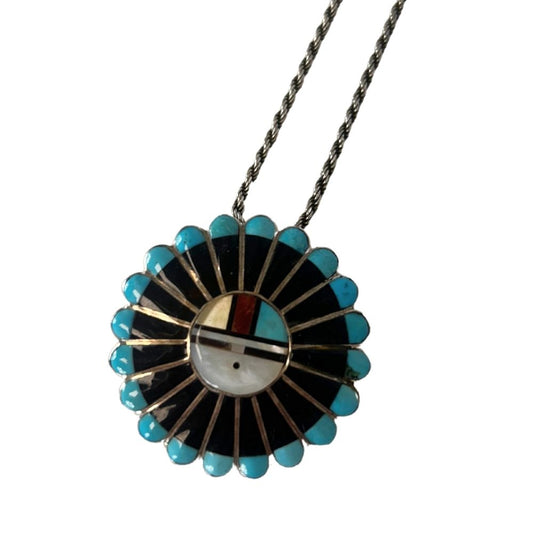 Sterling Silver Turquoise Face Pendant Necklace – 18" with Tribal-Inspired Detail