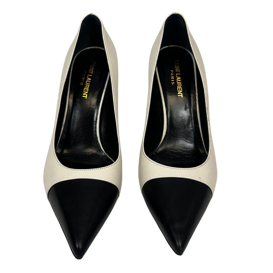 Prada Tan Leather Kitten Heels – Pointed Toe, Buckle Strap & Open Sides (Size 5)