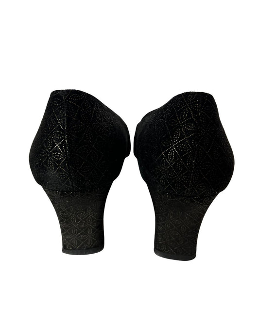 FERRAGAMO Black and Gold Pumps (Size 7.5)