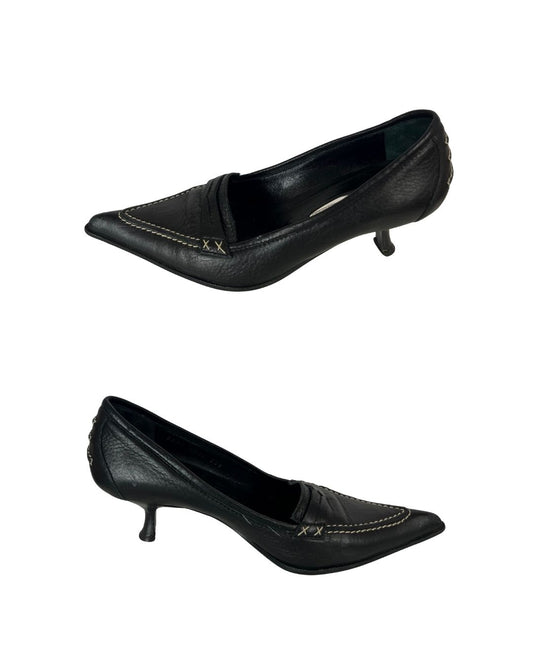 GIUSEPPE ZANOTTI Design Black Leather Kitten Heel Pumps (Size 6)