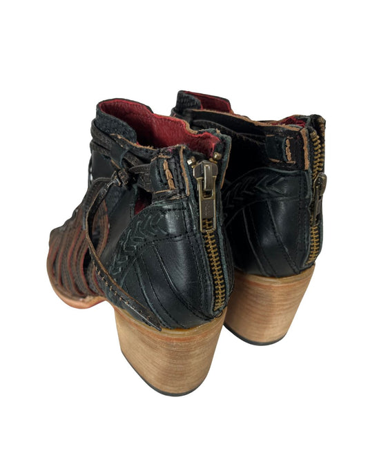FREEBIRD by Steven Quail Distressed Black & Brown Leather Heel Sandals (Size 5)