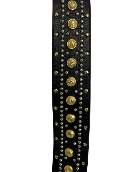 GIANNI VERSACE Vintage Black Leather Studded Belt
