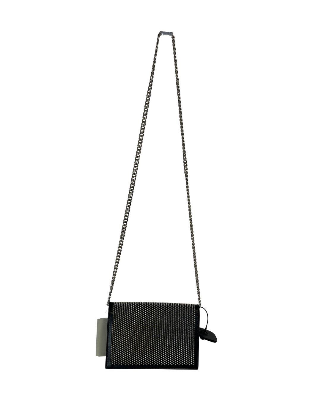 Your next designer bag is this calfskin, studded handbag. With a silver-tone chain and a skull closure, this bag makes a perfect closet addition.
