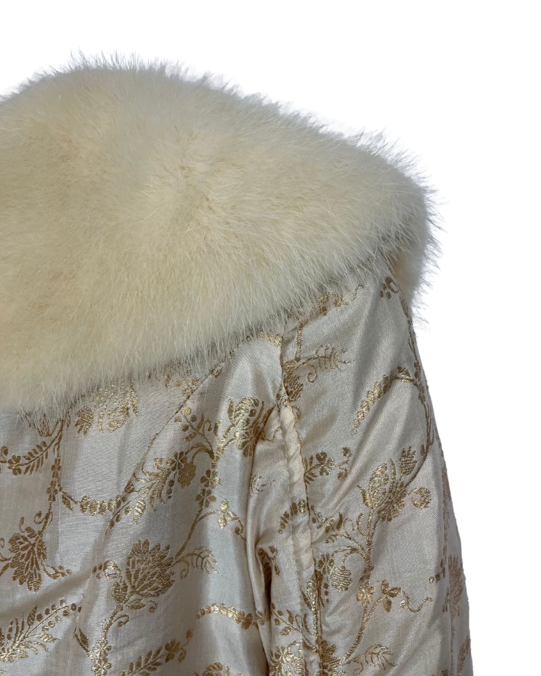 Stand out in a chic way this season with this iconic jacket with an ivory fur trim. The floral pattern and fur only make you the best-dressed person in the room! This jacket does feature 3/4 sleeves.